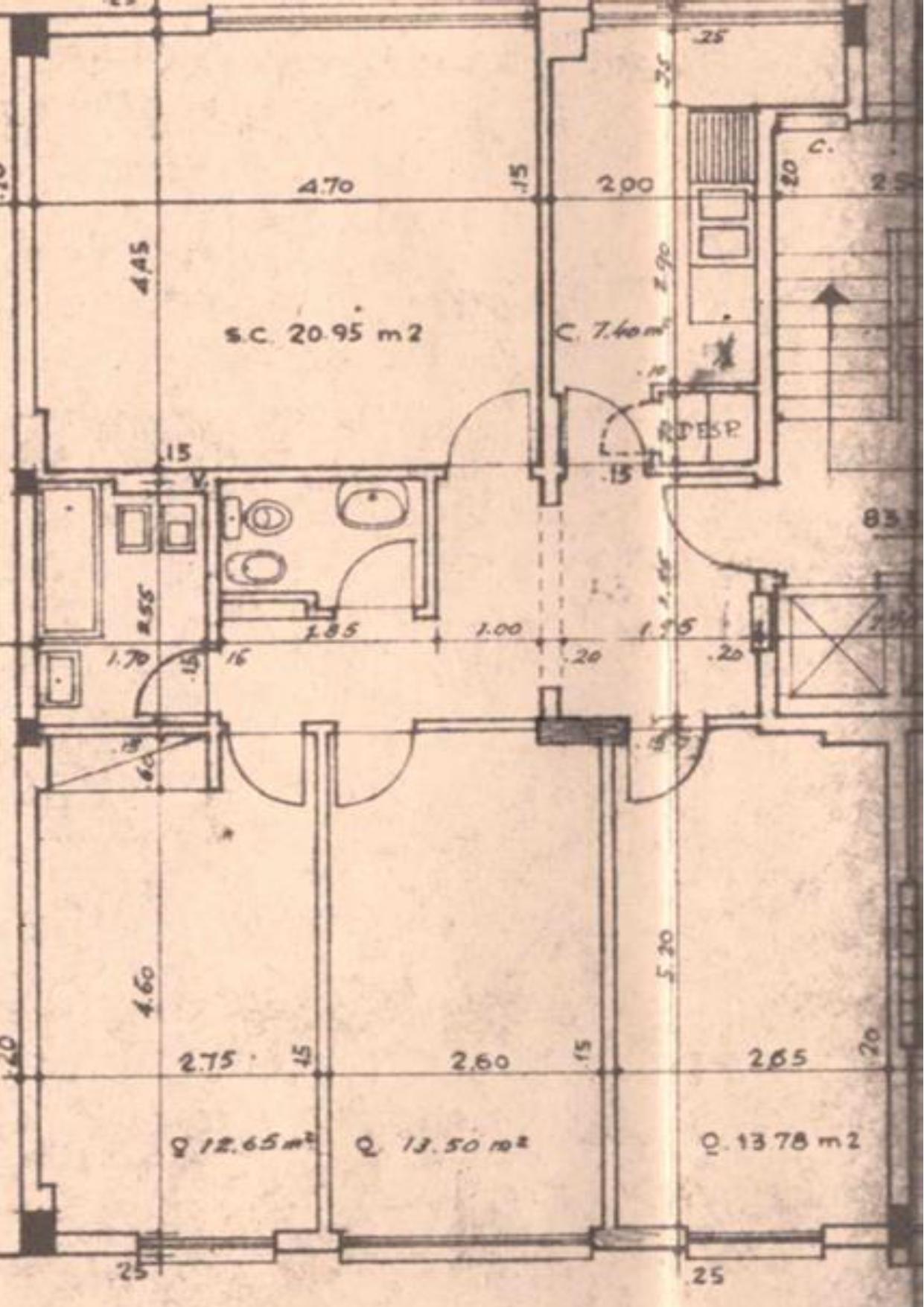 WC 4.50m2 Pavimento em mosaico, completa com base de duche.